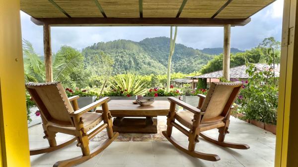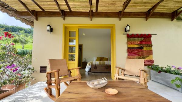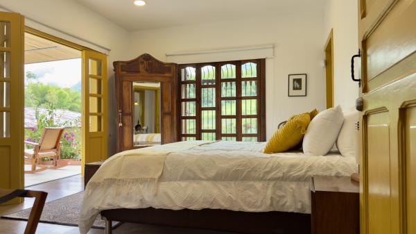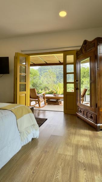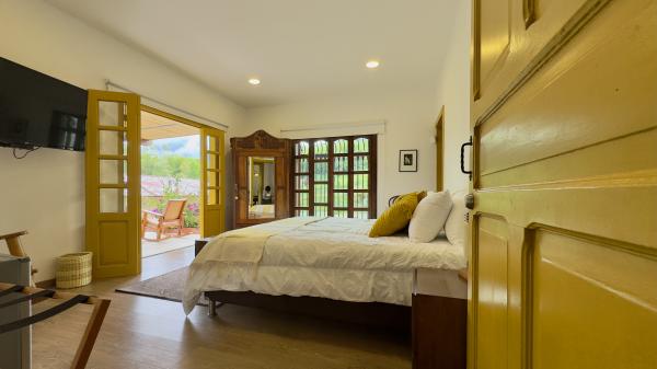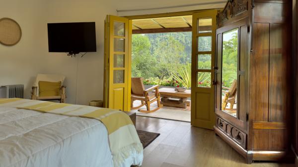 Sumérgete en el confort de nuestra habitación insignia, equipada con una amplia cama king size, baño privado y una generosa terraza desde donde podrás disfrutar de una vista privilegiada a las montañas que rodean nuestra reserva natural. Ideal para quienes buscan descanso y conexión profunda con la naturaleza en un entorno de lujo y serenidad.