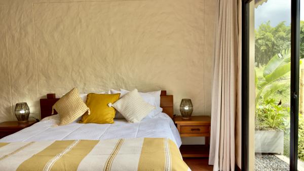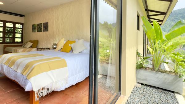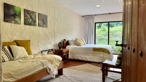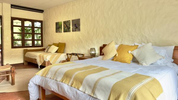 Hotel RoomsPensada para familias que buscan conexión con la naturaleza, esta habitación ofrece una cama doble y una sencilla, baño privado y una terraza que invita a una inmersión total en el entorno natural. Rodeada de aves y mariposas que danzan durante el día, es el refugio perfecto para descansar y disfrutar de la magia de la montaña.